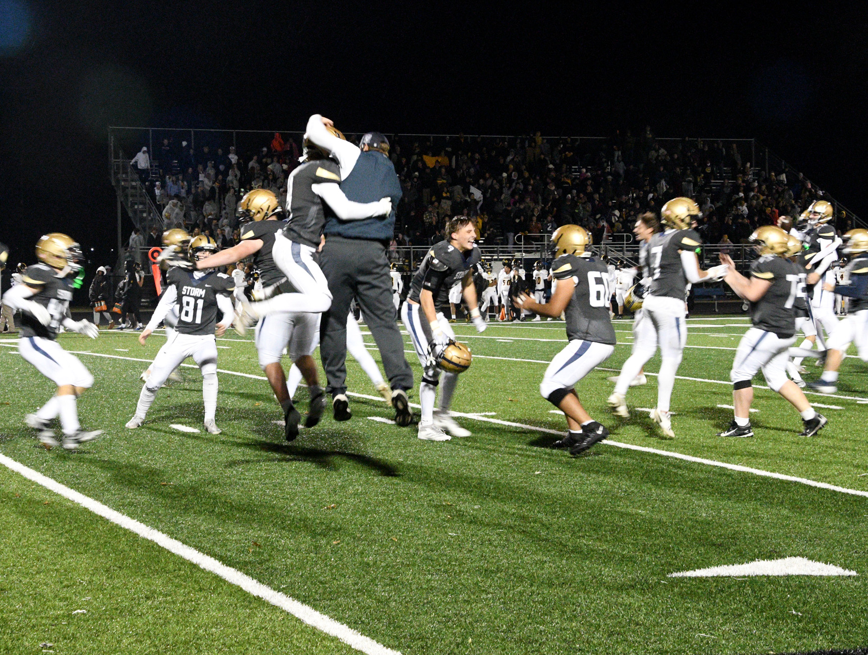 Chanhassen received the kickoff at their 30-yard line. In four plays, the Storm moved the ball to East’s 35-yard line. With six seconds left in the game, Nathan Ramler connected with James Kopfmann at the 1-yard line. Two plays later, Kade Bush ran it in for the go-ahead touchdown. Griffin Miller’s extra point was good, making the final 21-14. Chanhassen is the Section Two champion two years in a row.