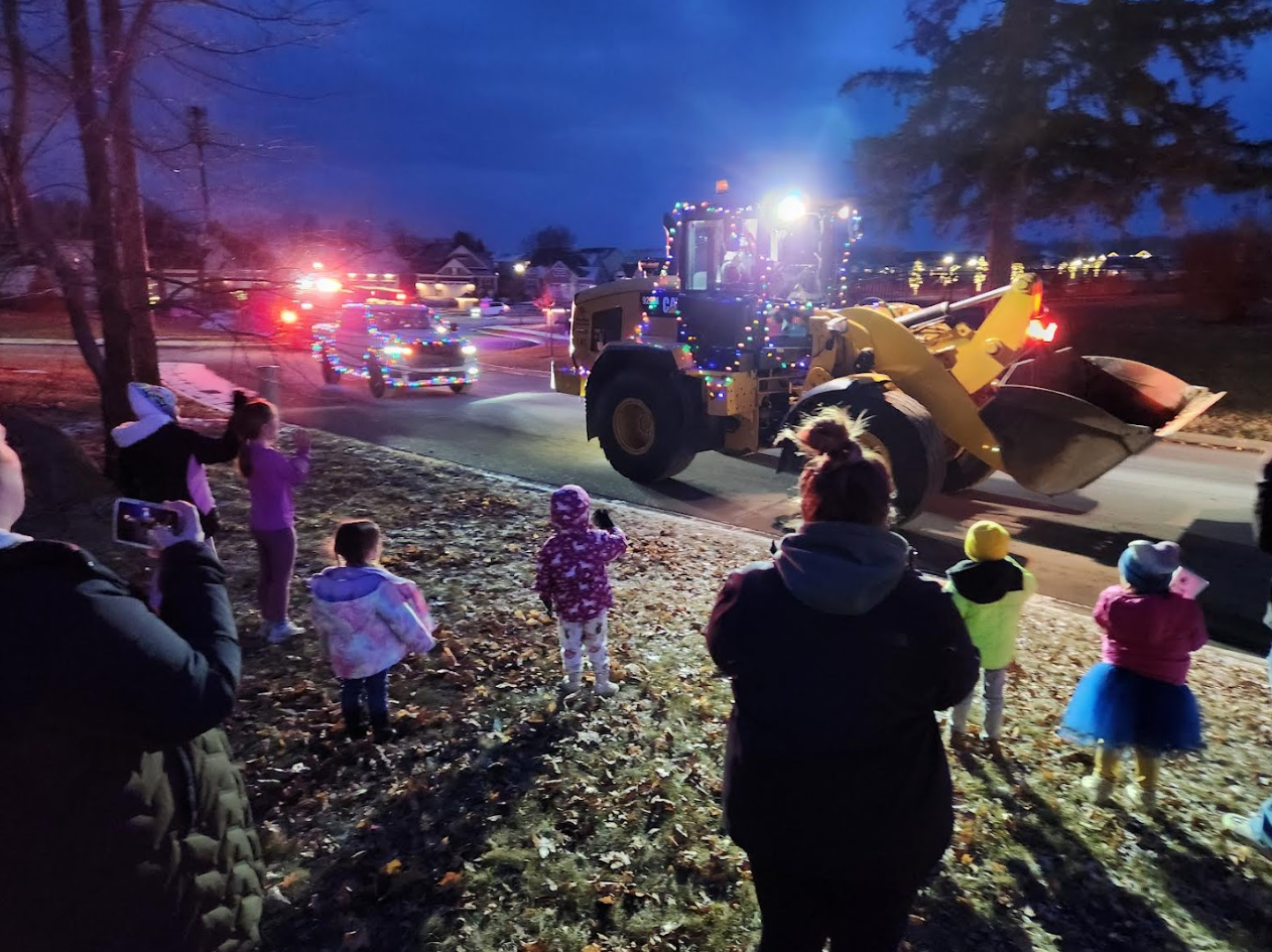 The parade route started at the Temporary Fire Station at 4:30 p.m. and concluded about four hours later. Local residents, including many youngsters, lined the streets to catch a glimpse of the Jolly Old Elf and others. They let out a big cheer and waved when the decorated police vehicles, plows and fire trucks passed by.