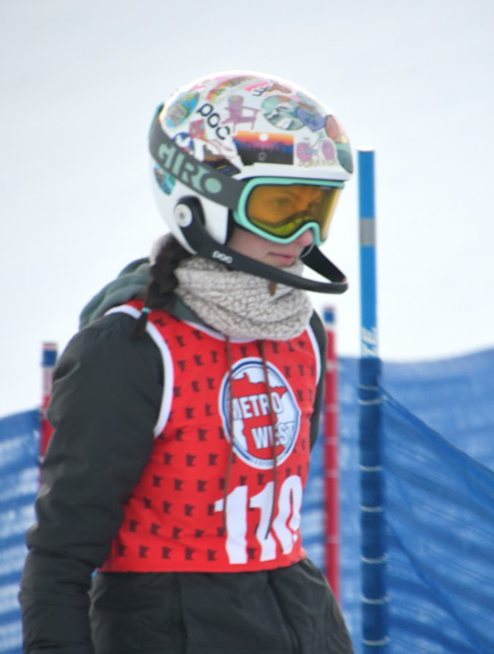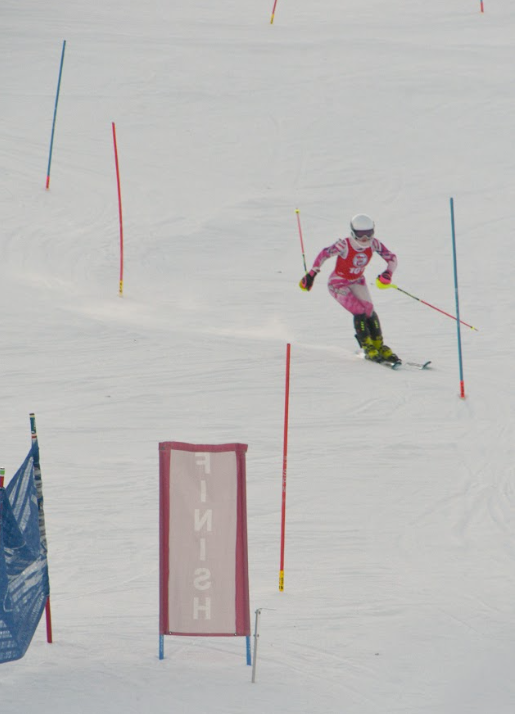 Alpine races are similar to what one sees during the Winter Olympics. Skiers race down a course of “gates,” making quickly timed turns. Each skier gets two runs down the course and the fastest time (minus any penalties, and a missed gate is most common) for the two runs is the medalist for the meet. Individual results are combined by team and the team with the best time is the winner of the meet.