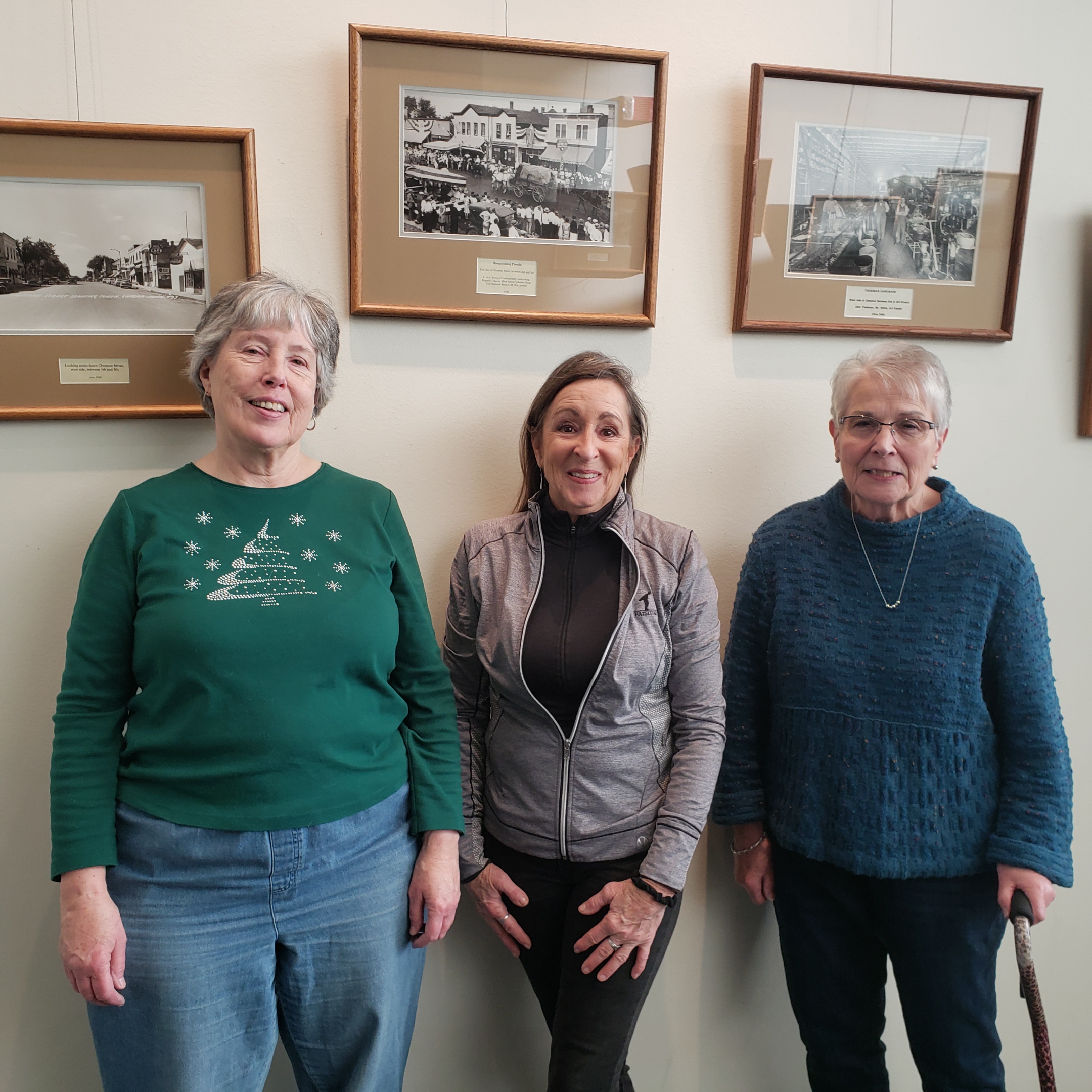 History Center volunteers who hung the exhibit include Dorie Coghill, Ruth Travis and Barb VanEyll.