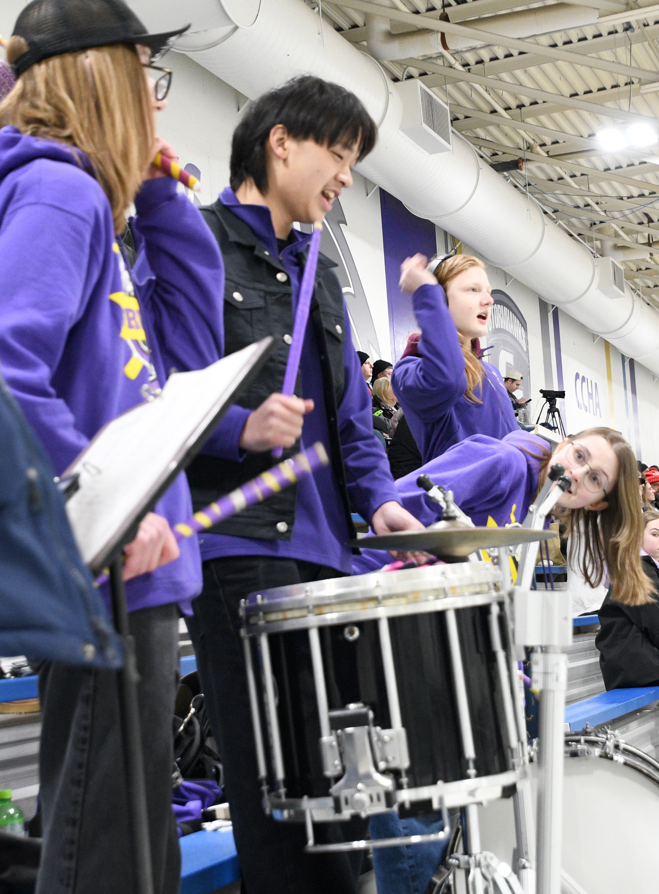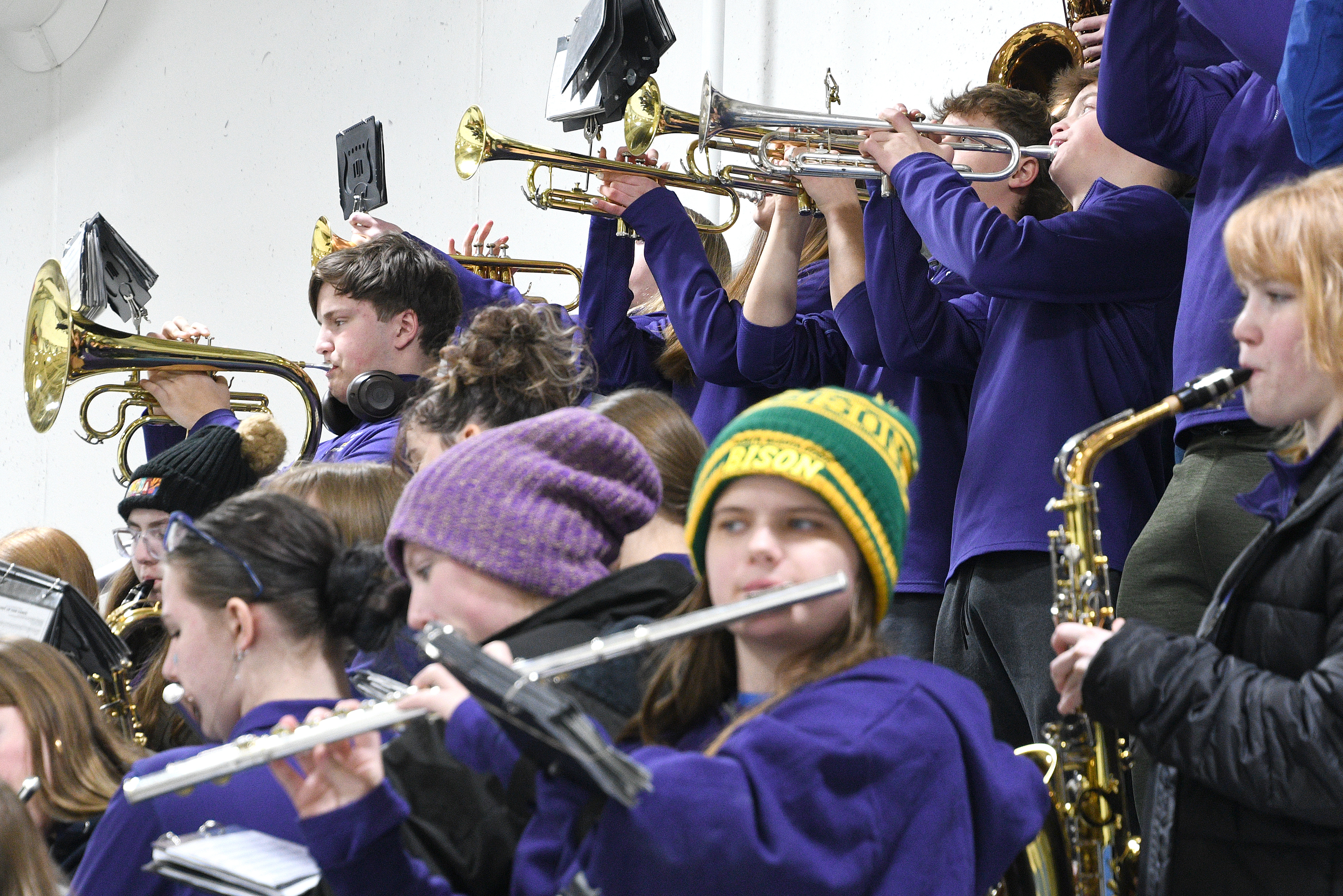 “Many students get much better at their techniques and their performing skills,” Beckler said. “It’s great to be out here to support the community and the school. It’s great when we can add a tune at a break in the action and get the crowd into the game.”