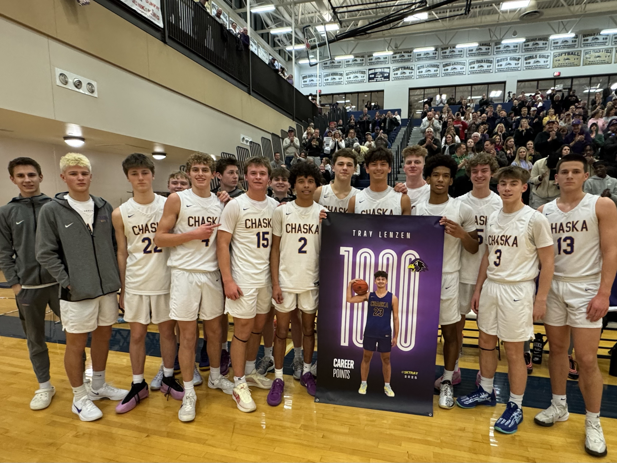 On a landmark night in which Lenzen joined the ranks of 1,000-point scorers for Chaska High School, the Hawks captain scored a game-high 35 points, as Chaska turned a tie game at halftime into a 70-47 blowout victory over their crosstown rival.
