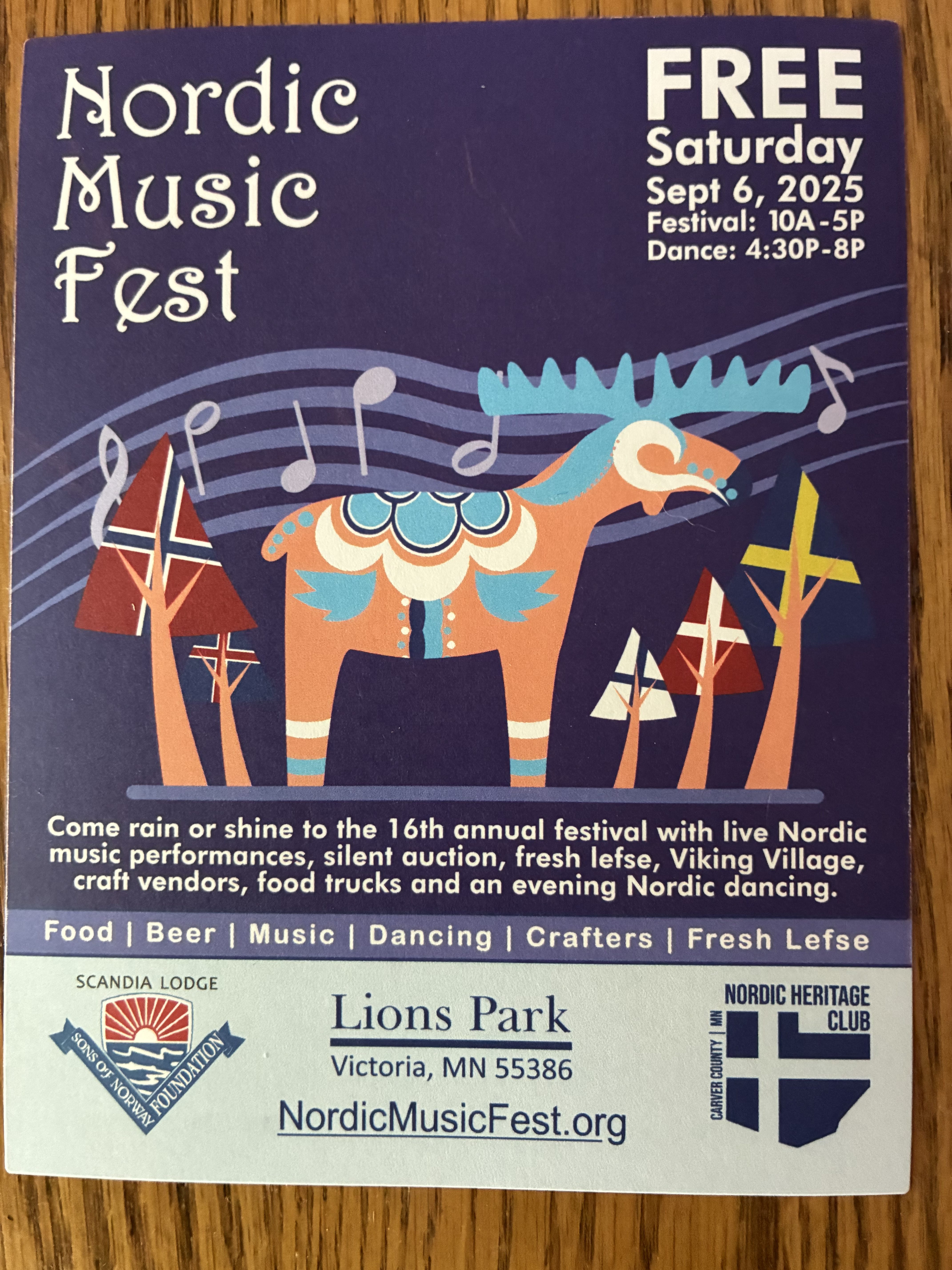Join in on the fun with live Nordic music performances, silent auction, Viking Village, craft vendors, food trucks and evening Nordic dancing.